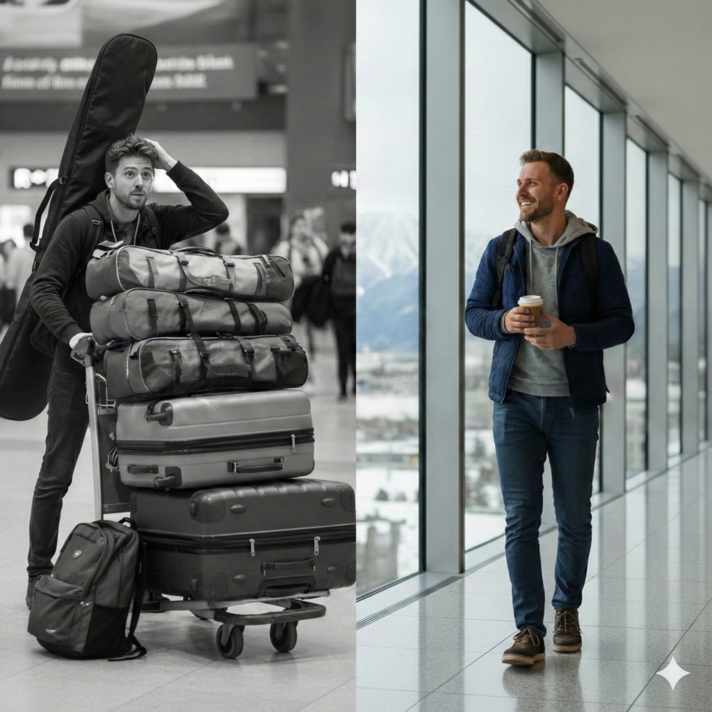 • 旅行壓力與時間損耗:攜帶沉重裝備搭乘大眾運輸工具既耗費體力,又會因繁瑣的物流和機場手續浪費 3 到 5 小時的寶貴假期。